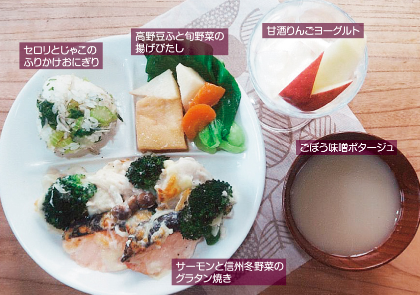信州の⾷材を取り⼊れ、⾷品ロスも少なく、⼩さなお⼦さまでも料理を楽しめる⼯夫がされています。盛付けにもセンスがあふれていました。