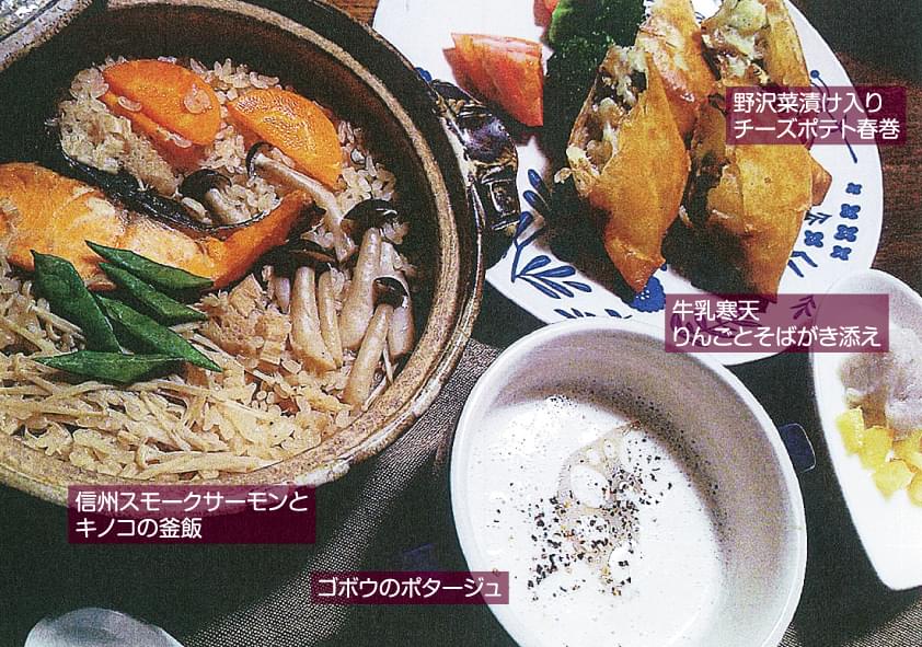 県内で育ったこれらの農畜水産物やそれを主原料に使用した加工品、食文化をまとめて「おいしい信州ふーど」と呼んでいます。「おいしい信州ふーど図鑑」を参考に、とっておきのレシピを考えてみましょう。